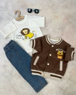شامل تیشرت و شلوار جین کت پسرانه مدل بیس بالی
