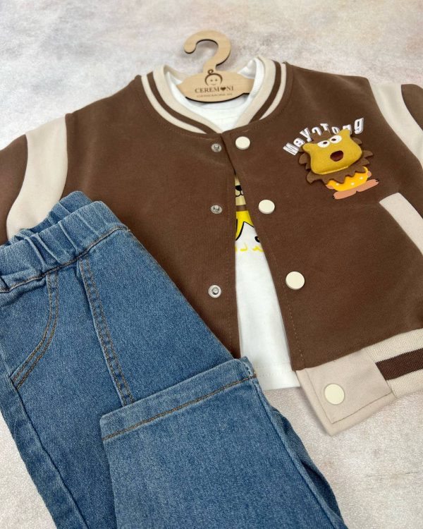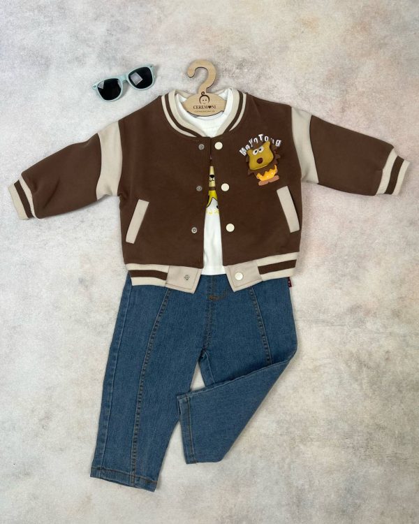 شامل تیشرت و شلوار جین کت پسرانه مدل بیس بالی