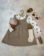 ست لباس دخترانه شامل سارفون ،بلوز و جوراب که مناسب فصل بهار و پاییز می باشد.